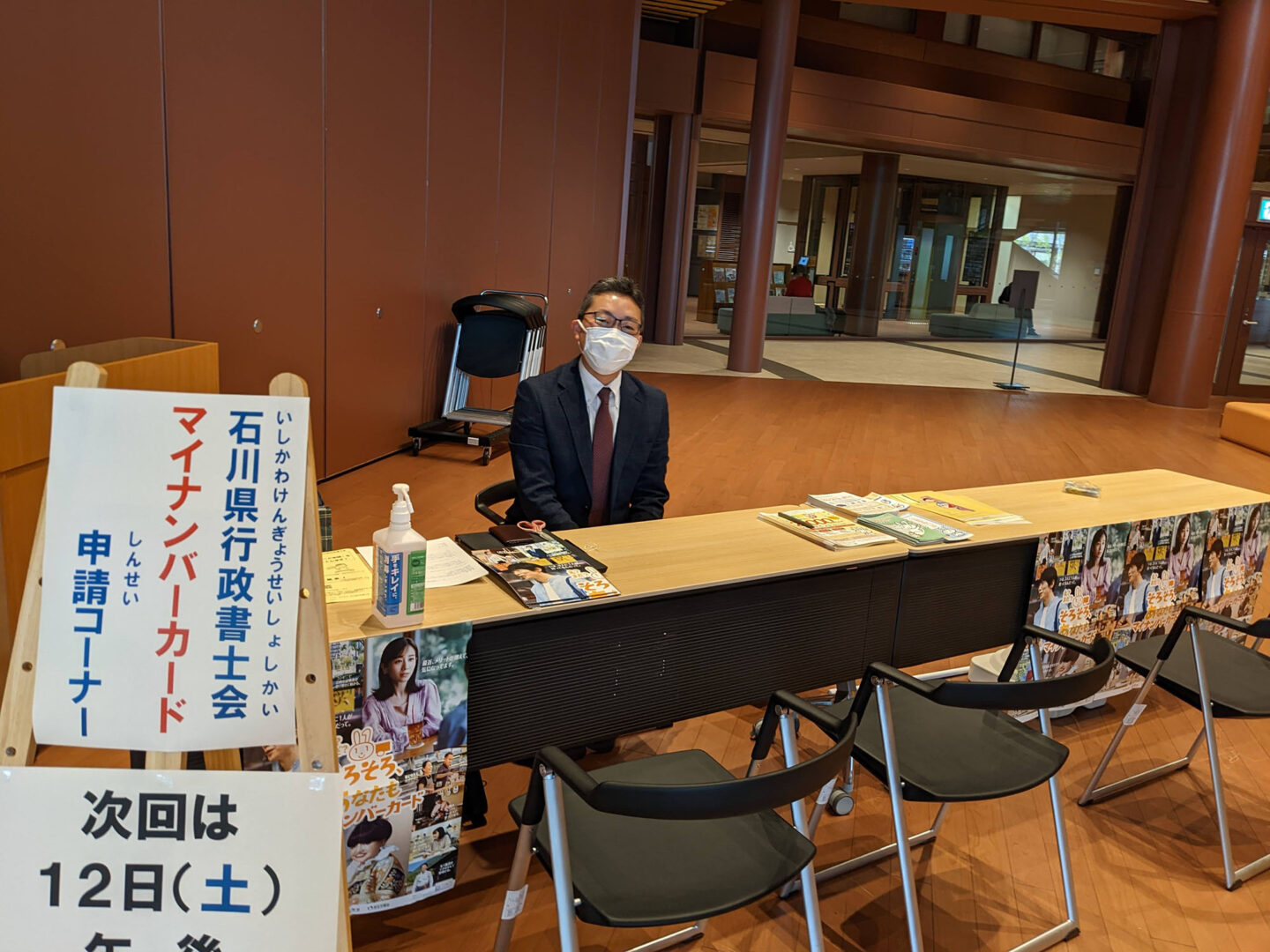 石川県行政書士会では令和5年1月も引き続き、石川県立図書館にマイナンバーカード申請代行コーナーを設けます。