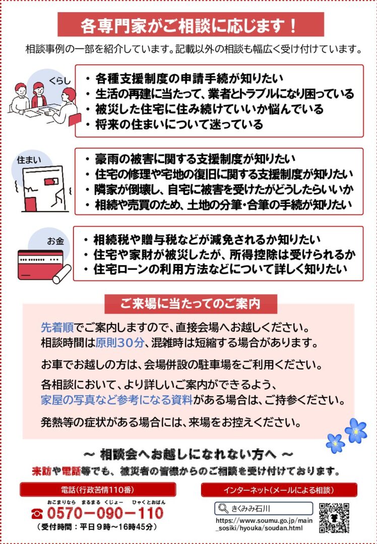 総務省石川行政評価事務所では、令和6年能登半島地震・奥能登豪雨で被災された方からのご相談をお受けする
