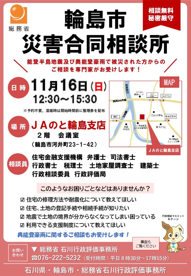 「 輪島市災害合同相談所 」をJAのと輪島支店に開設いたします。