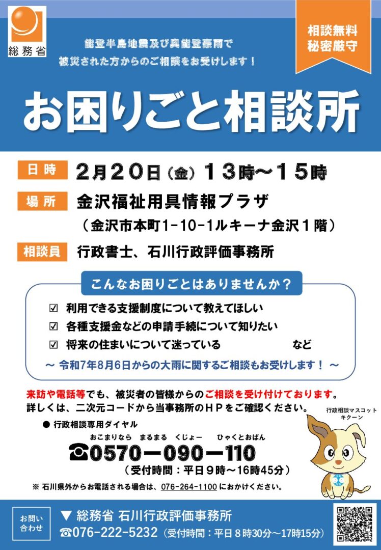 総務省石川行政評価事務所では、令和6年能登半島地震・令和6年奥能登豪雨・令和7年8月の